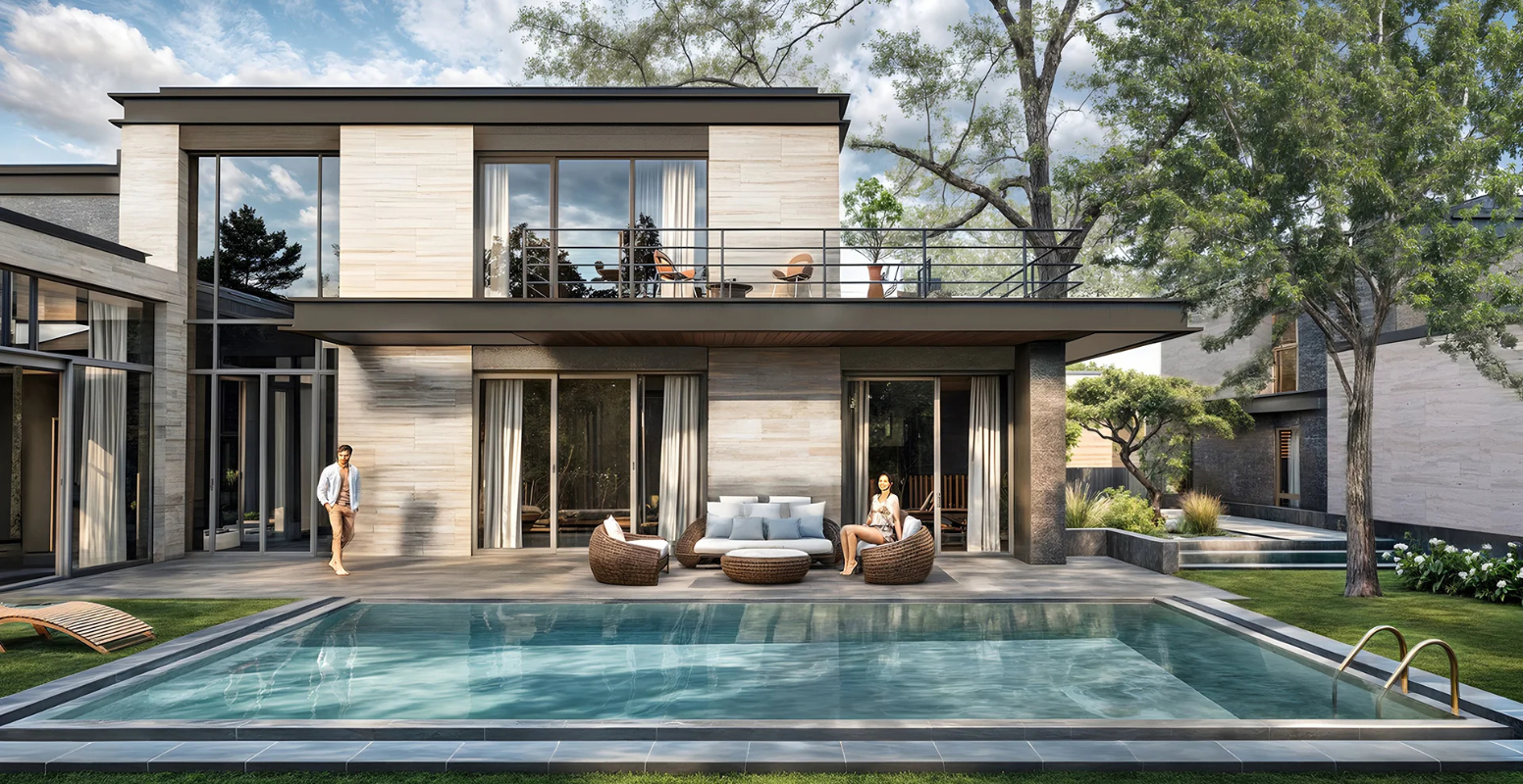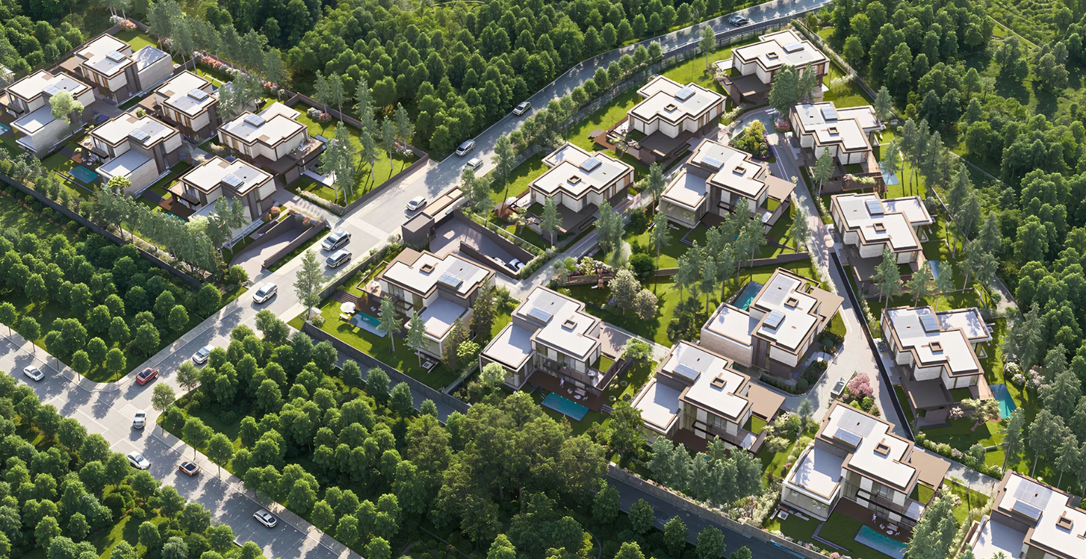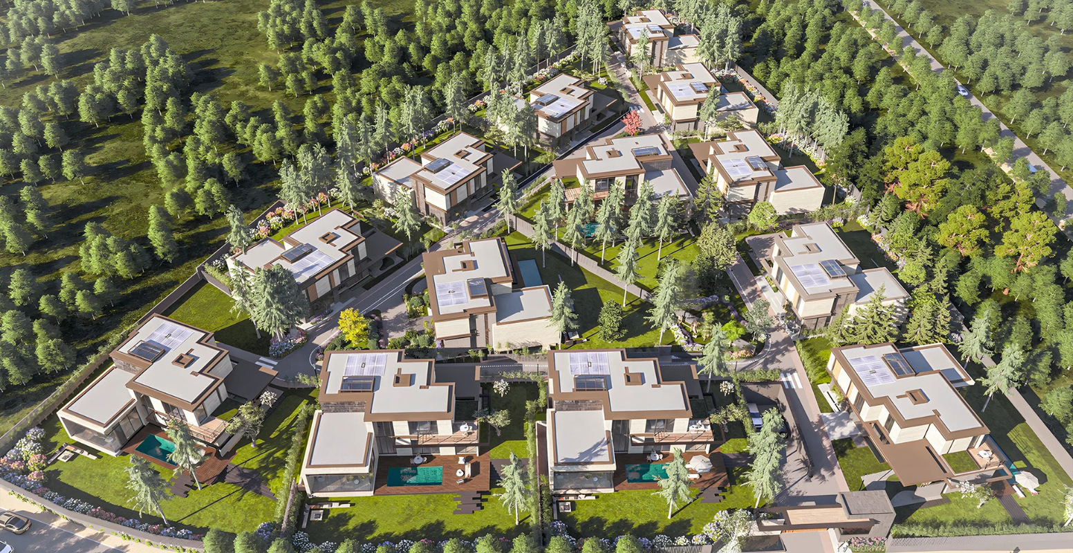 Villalar, yüksek kaliteli, ferah ve aydınlık yaşam alanları sunmaktadır. Ana giriş kapısından girildiğinde ziyaretçileri yüzme havuzu ve olgun ağaçlarla çevrili yemyeşil bahçenin manzarası karşılar. Gündüz ve gece farklı atmosferler yaratan bu villalar, zarif bir yaşam deneyimi sunar.