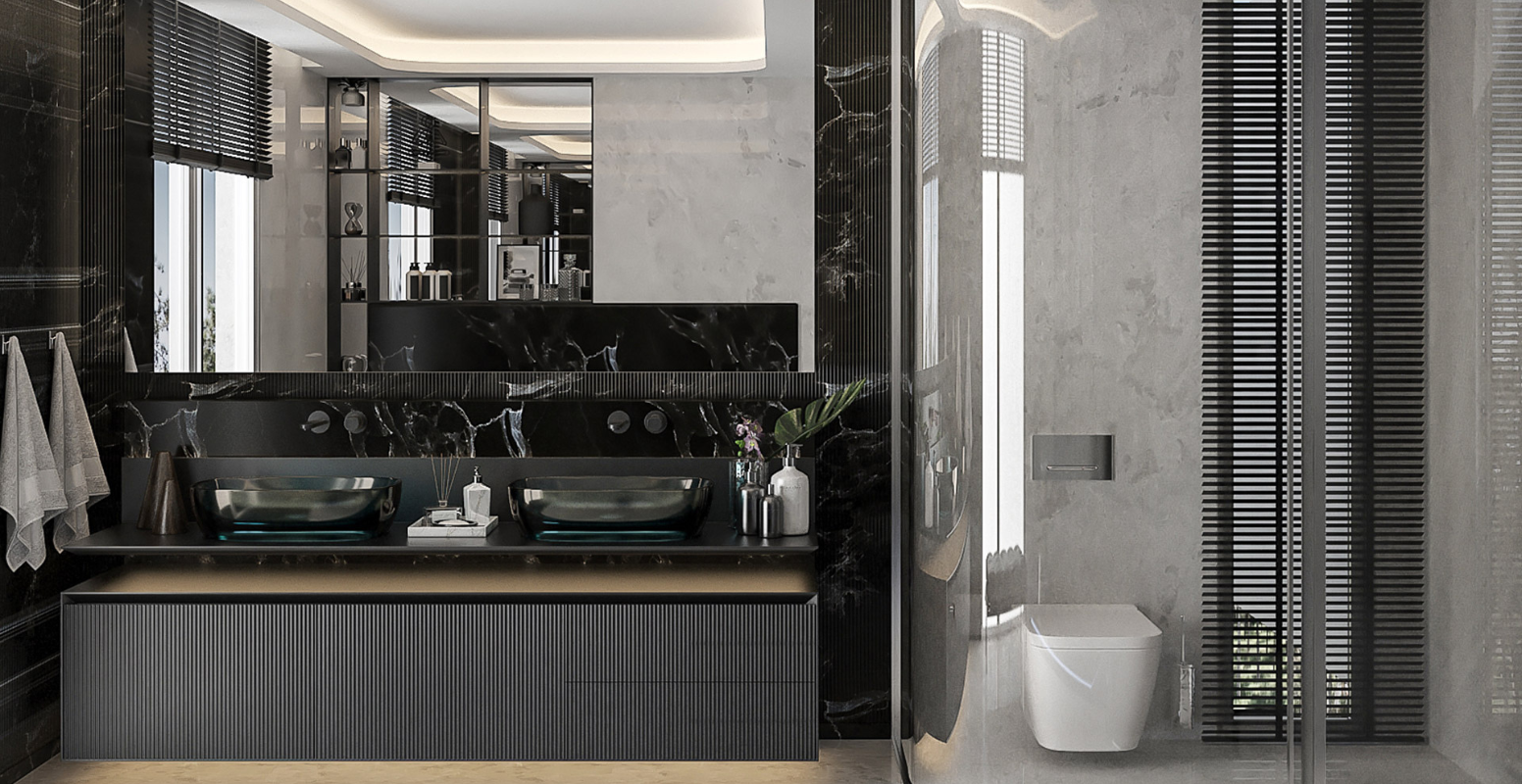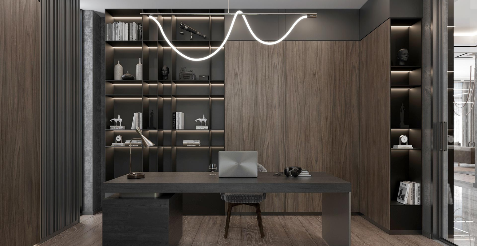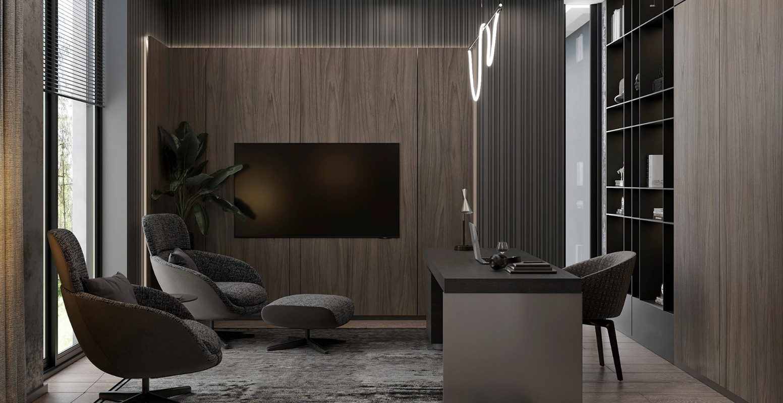 Pandemi sonrası evlerde vazgeçilmez hale gelen ofis-kütüphane odası, süs havuzuna bakacak şekilde tasarlanmıştır. Zemin katta, bahçe manzaralı giriş holü, arka kısımdaki salon ve mutfakla bağlantılıdır. Yapının merkezinde yer alan çatı pencereli merdiven boşluğu, doğal ışığın içeri girmesini sağlar. Üst katta ebeveyn yatak odası ve iki ek yatak odası; alt katta ise iç avlularla aydınlatılan hobi odası, spa/hamam, çamaşır odası ve teknik hacimler yer alır. Tüm katlara asansörle erişim mümkündür. Bodrum kat, en az üç araçlık kapalı otoparka doğrudan bağlantılıdır ve girişte geniş bir vestiyer alanı bulunmaktadır.